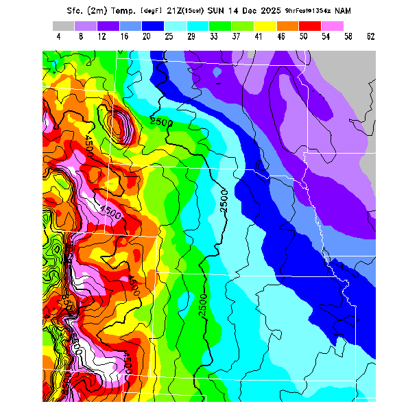 State outlines are depicted on each BLIPMAP in white.  The NAM topography is plotted as black contours, at 500 ft intervals with thicker lines at 2000 ft intervals, to assist in location identification but also to emphasize the smoothed nature of the model topography.  The BLIPMAP does not predict thermal lift created by small-scale terrain features which are not resolved by the model topography, which often give localized updrafts significantly stronger than those over the surrounding smoother terrain.