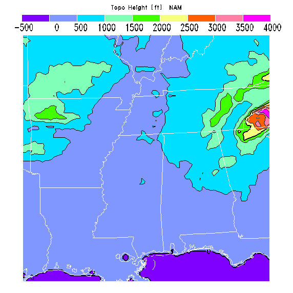 The parameters are averages over 12 km grid squares as forecast by the NOAA's National Centers for Environmental Prediction (NCEP) NAM model. Other NAM forecasts are also available from various sources, including Unisys NAM forecast maps, NAM forecast soundings, and NAM forecast meteograms.  NAM BLIPMAPs are updated as new NAM forecasts become available, normally at 6 hr intervals.
