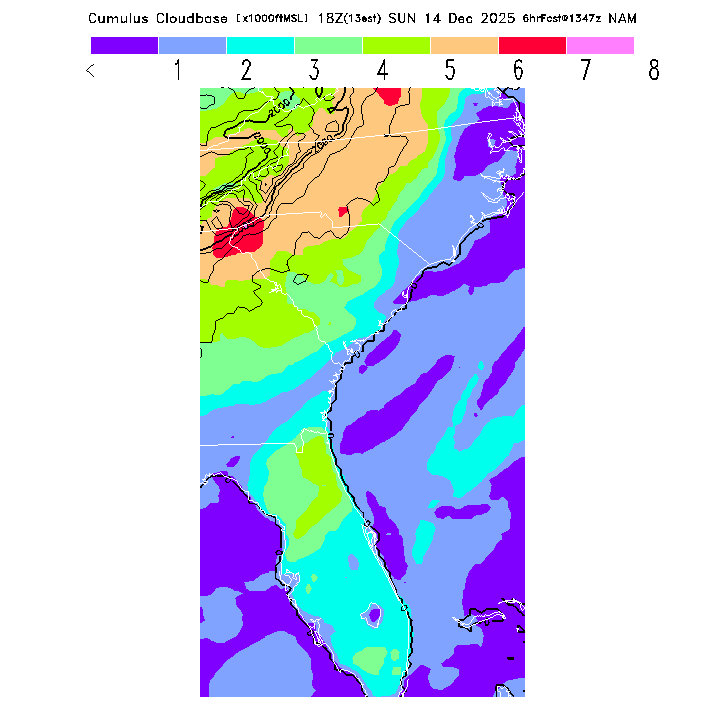 Cu Cloudbase Cloudbase contours are plotted only where that cloudbase is theoretically expected.  See "Cumulus Potential" and "Cumulus Cloudbase" parameter descriptions below for more information.  This composite is useful only for locations where the actual potential threshold for cumulus cloud production agrees with the theoretically-predicted value of zero.